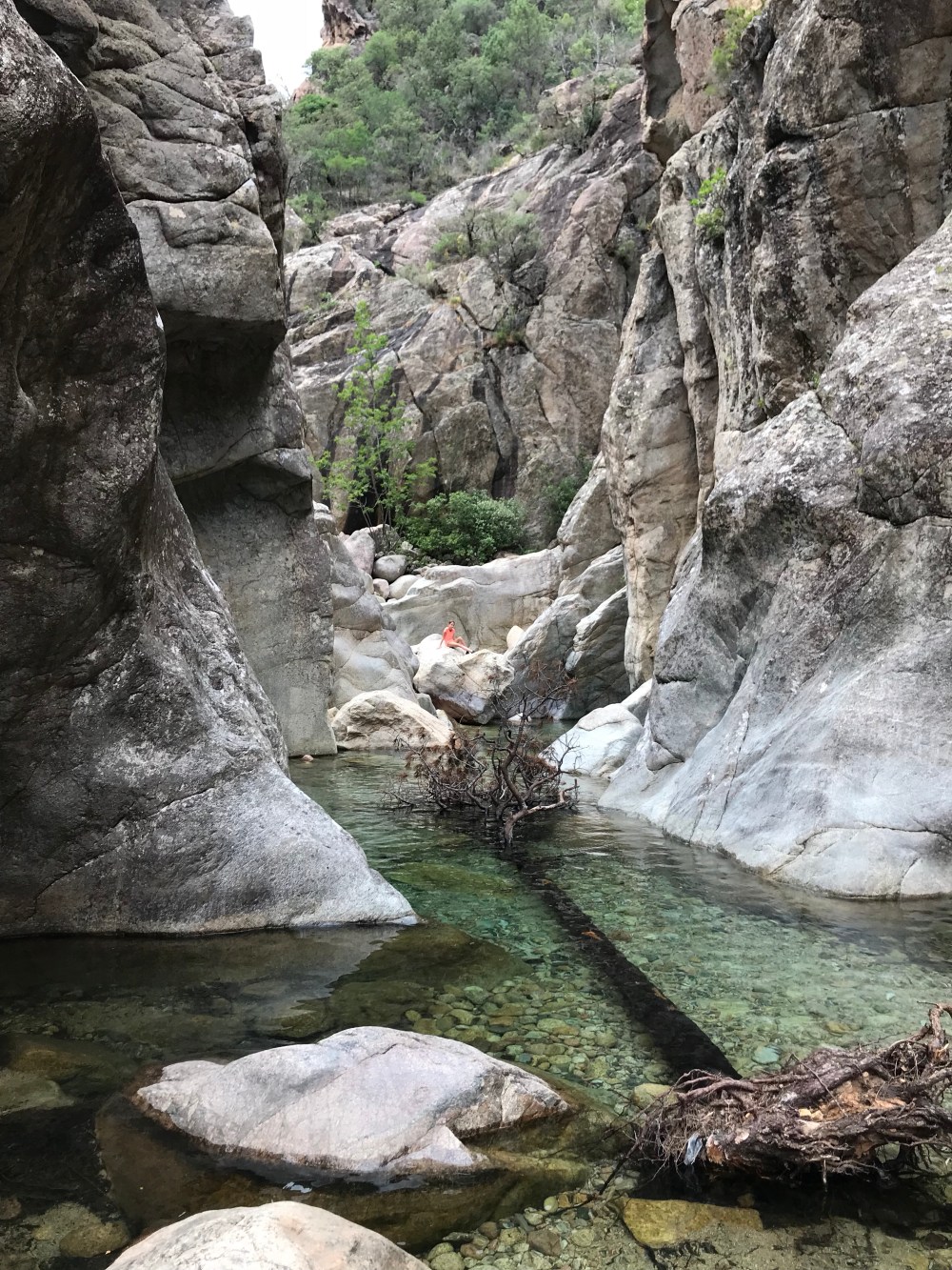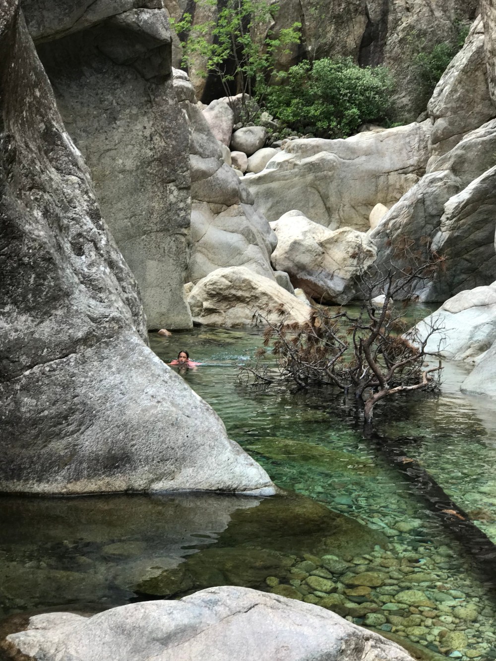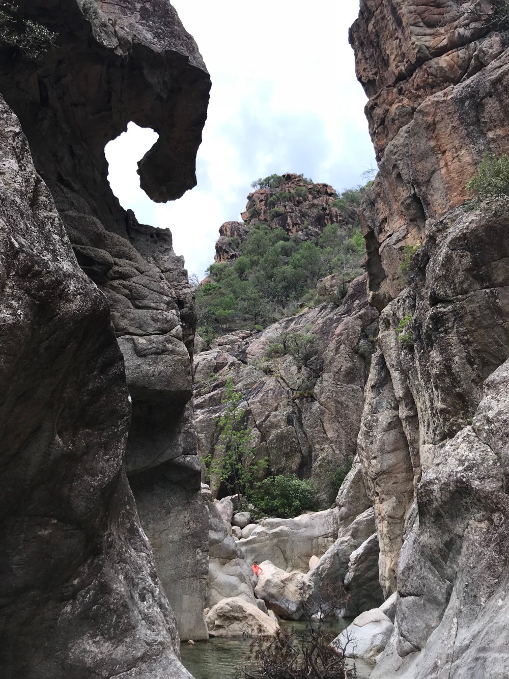 Ein schönes „Bild“ war wohl immer dann wenn ich unseren Rucksack mit allem Proviant auf dem Kopf tragen musste, weil mir buchstäblich das Wasser der Gumpen bis zum Hals stand. Stine meinte ich hatte auch das eine oder andere Mal unter Wasser weitergeredet ?!?