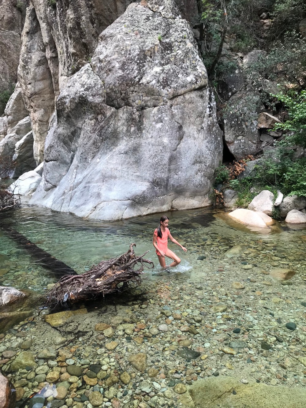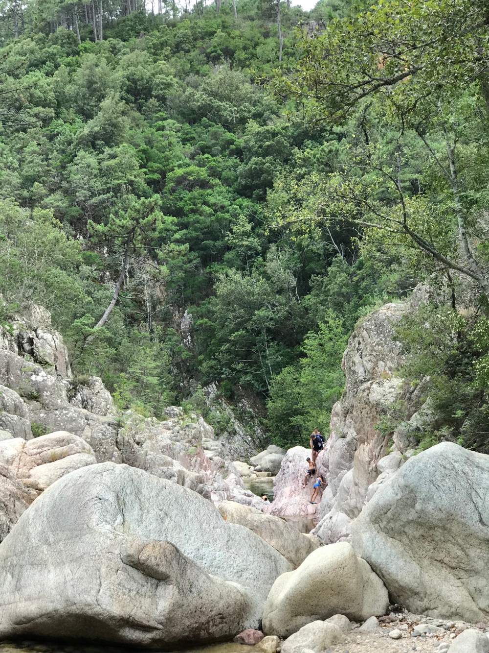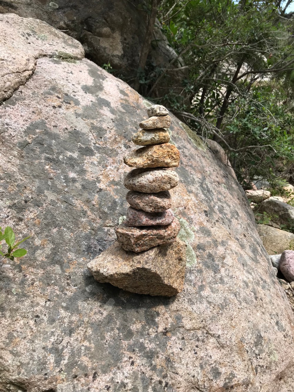 Die ersten 10 Minuten sind wir im Bachbett über 10- 30 cm große Runde Granit“Kiesel“ gelaufen .. das gehen wie auf Eiern passte nirgends besser.