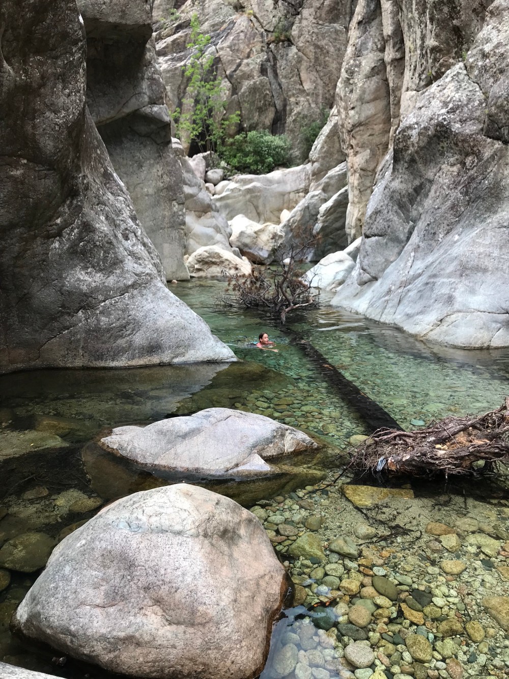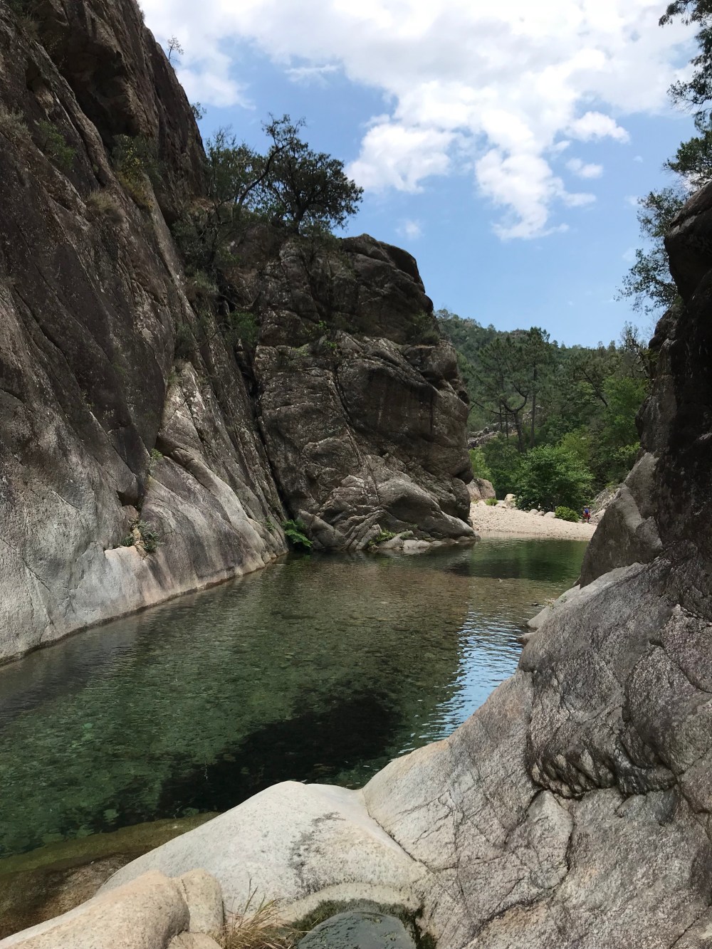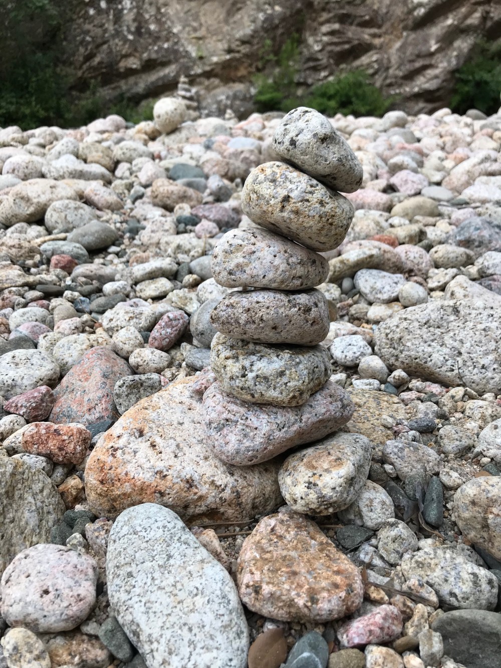Die ersten 10 Minuten sind wir im Bachbett über 10- 30 cm große Runde Granit“Kiesel“ gelaufen .. das gehen wie auf Eiern passte nirgends besser.
