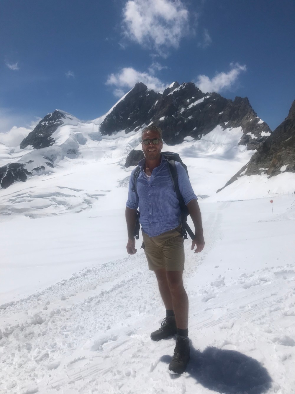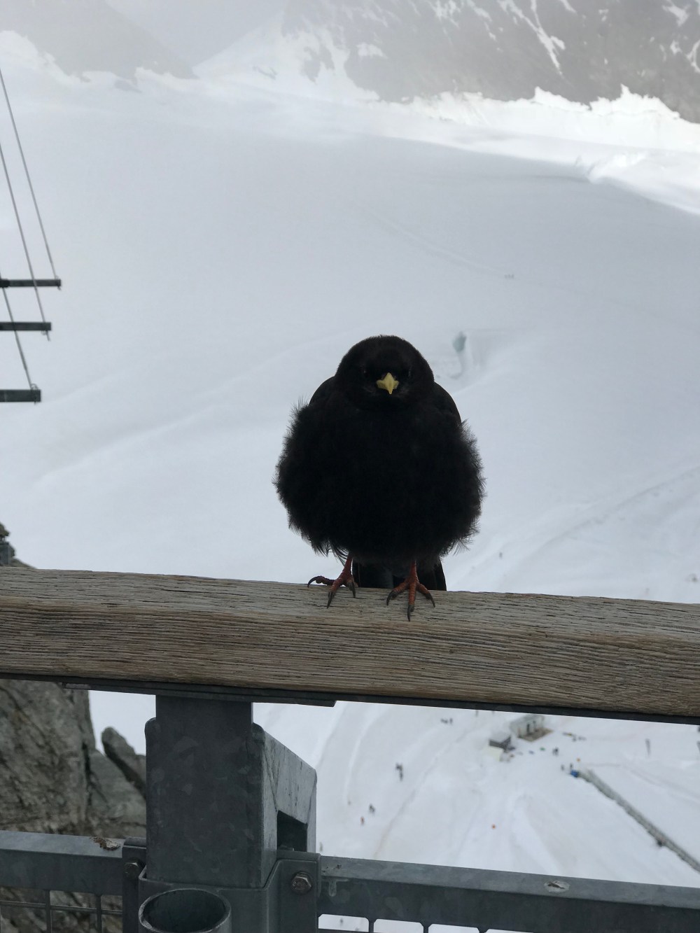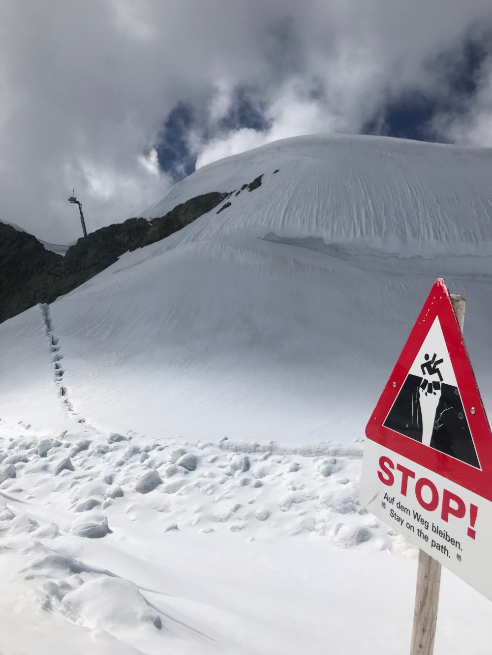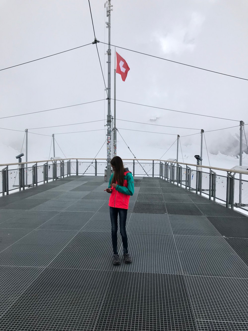 Als wir auf der kleinen Scheidegg ankamen war der Tag noch jung und das Wetter hielt sich. Wir sahen all die Menschen die auf diesem wunderbaren Bahnhof ( Es sieht alles aus wie eine Eisenbahn Landschaft ) in die Züge stiegen oder gerade von Top of Europe runter kamen. Ich erzählte vom größten Gletscher der Alpen, dem „Aletschgletscher“ der aus drei gewaltigem Eisströmen zusammenfließt und 22 km lang ist und zu früheren Zeiten eine dicke von 900 Metern hatte. Erzählte vom Ewigen Eis dort oben von einer Forschungsstation, dem Meteorologischen Observatorium und dass man mit kurzer Hose und T-Shirt bei heutigen 0.9 Grad dort sein kann.