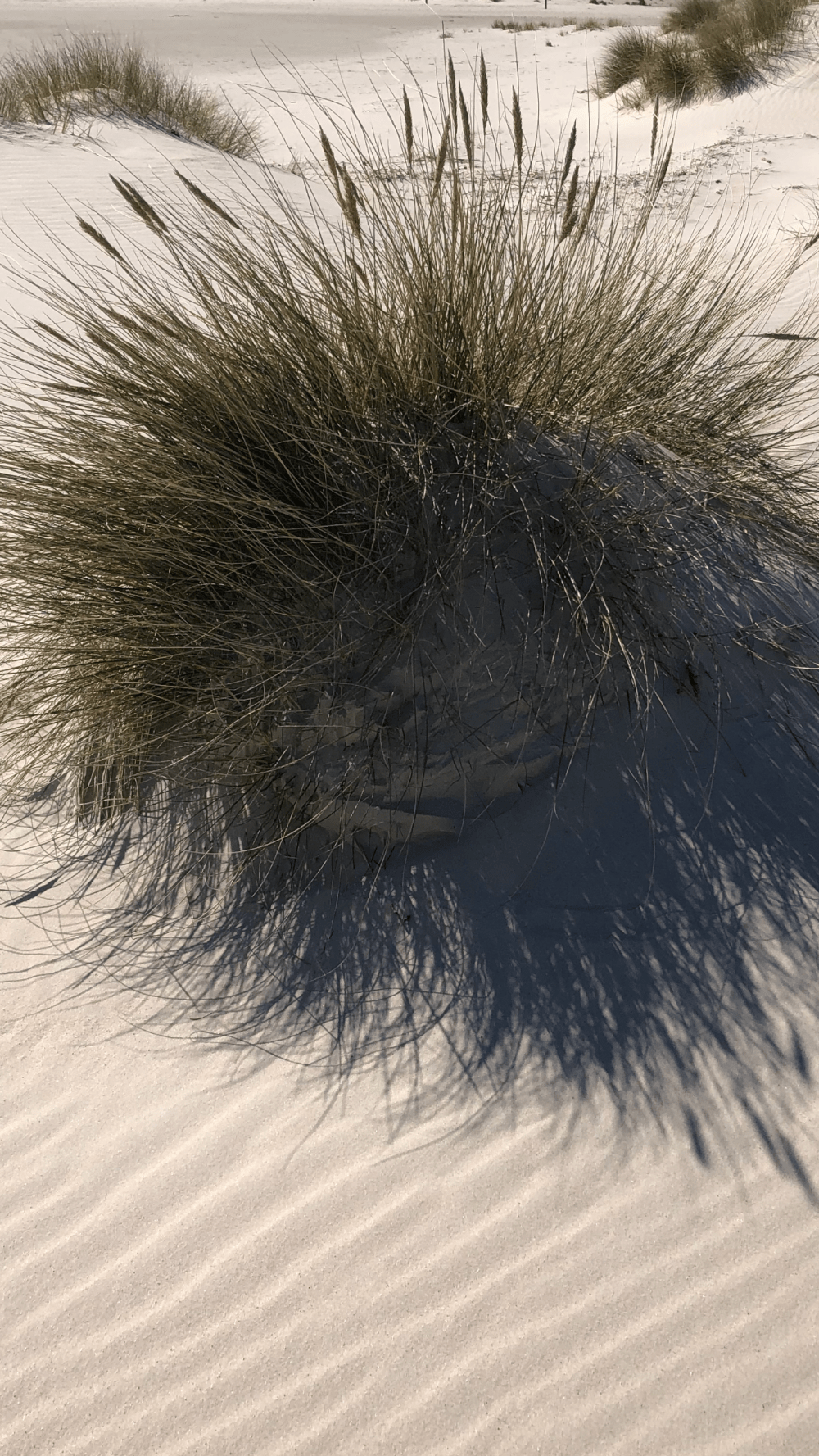 Bei schnellem hinsehen könnte die Sandkugel mit dem Strandhafer auch ein Punk sein… Augen, Mundwinkel nach unten gezogen, wilde Haare..