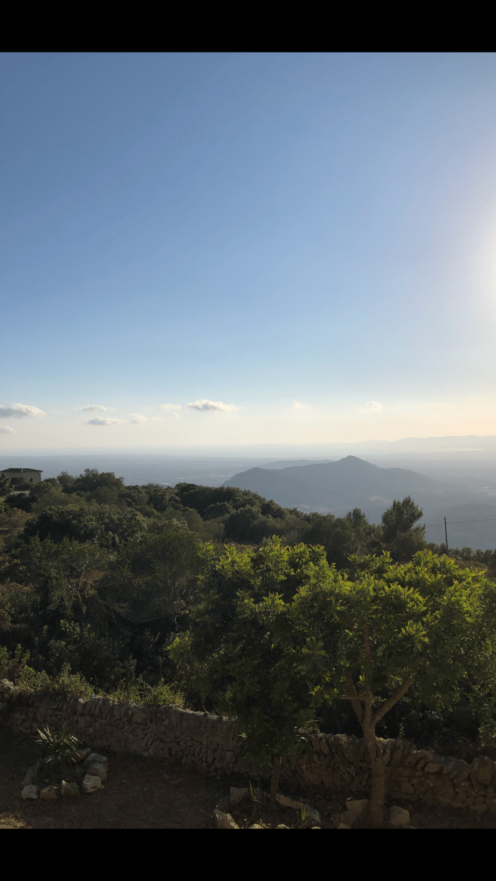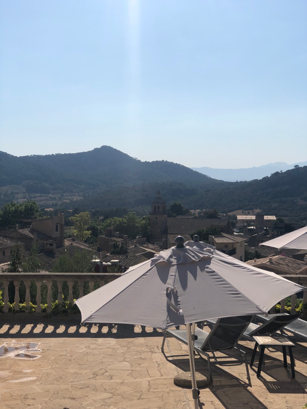 Ein Traum – man schaut über das malerische Dorf Randa und über die Inselmitte bis zum gegenüber liegendem Gebirge.