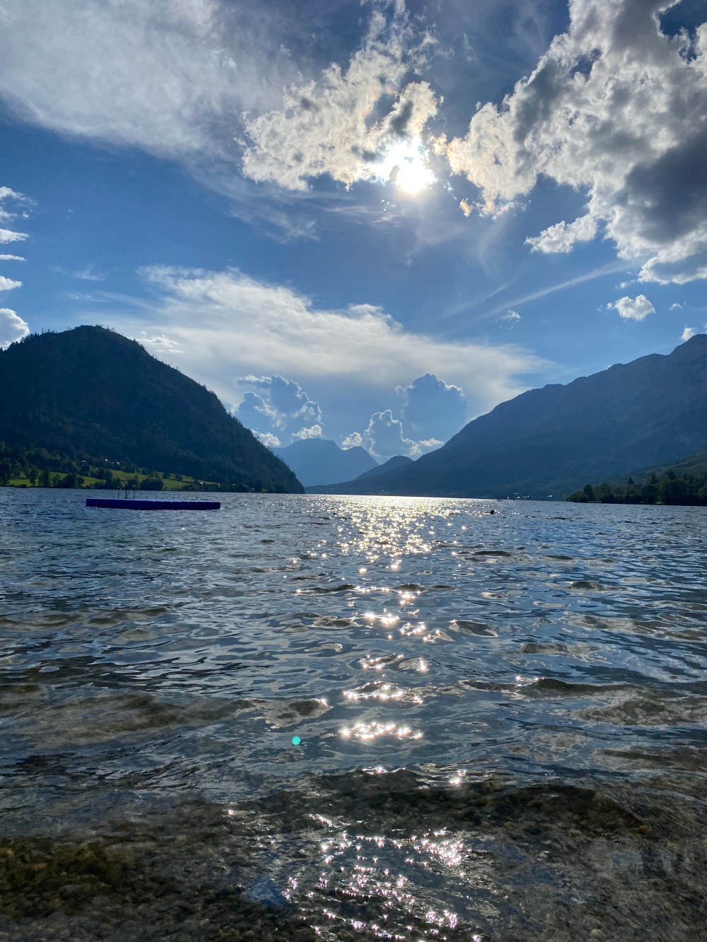 Herrlicher Sonnenschein empfängt uns am ersten Tag am Grundlsee.
