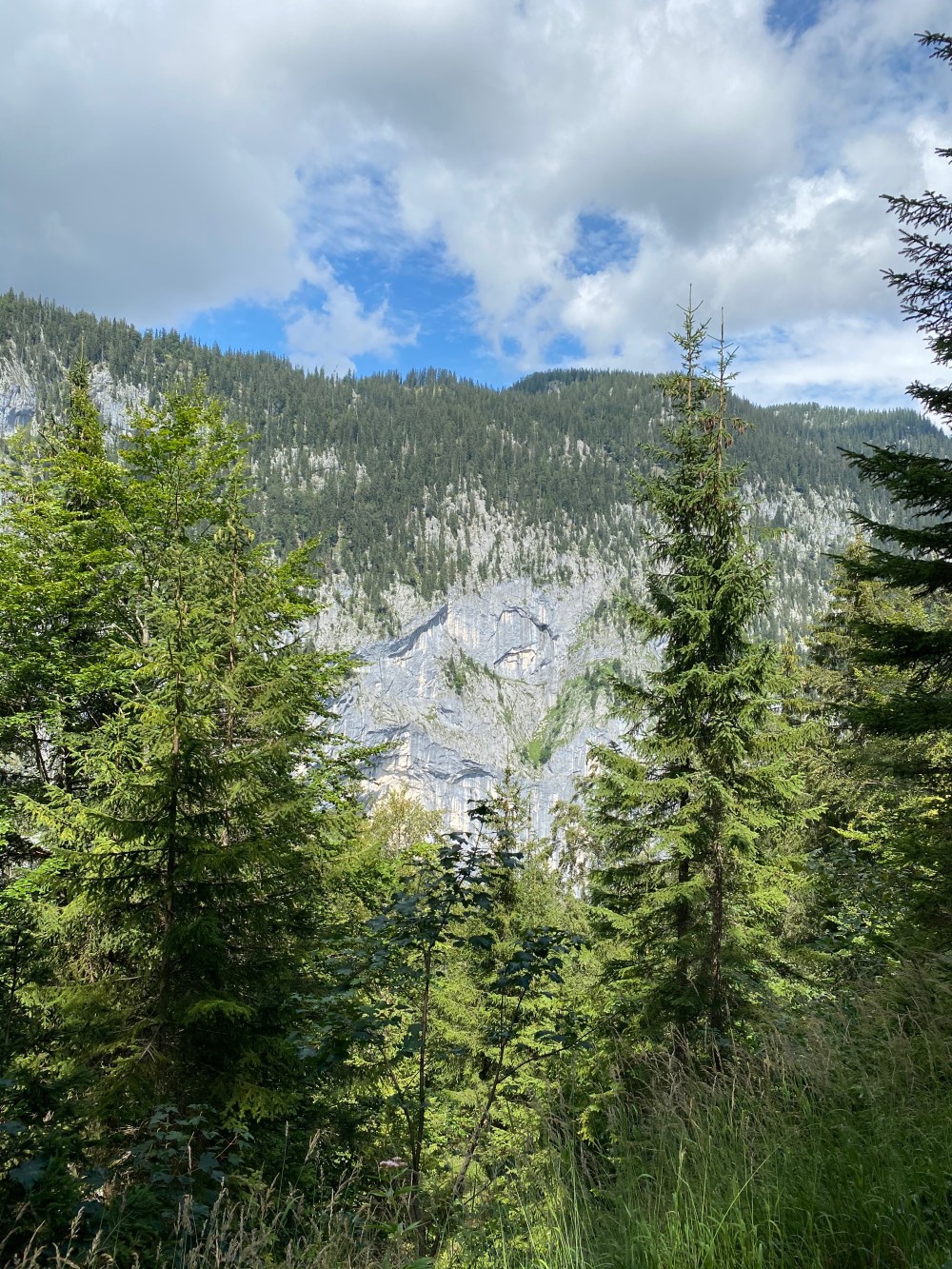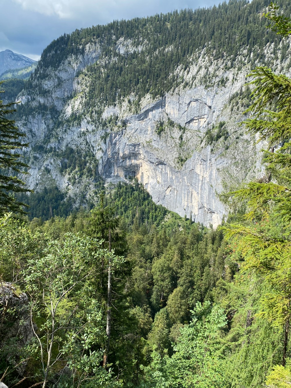 Entschädigt wurden wir mit senkrechten Felswänden die in den weit unter uns liegenden Toplitzsee eintauchten. Absolute Stille und das Rauschen eines Wasserfalles.