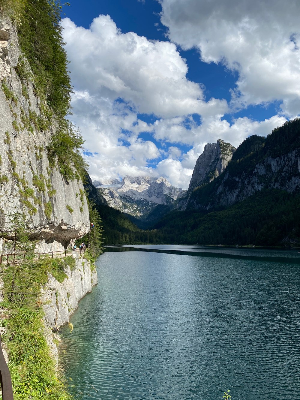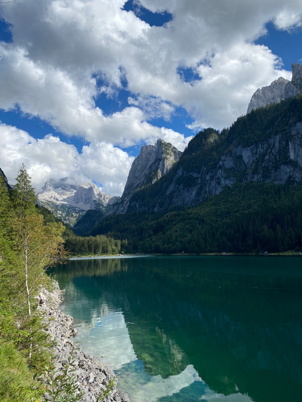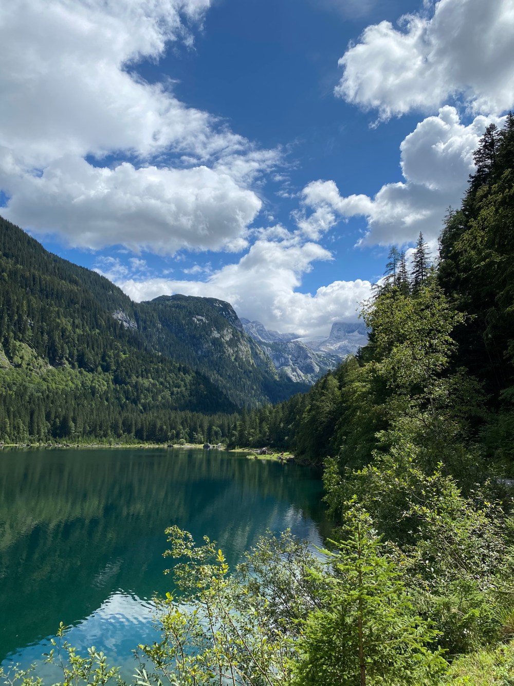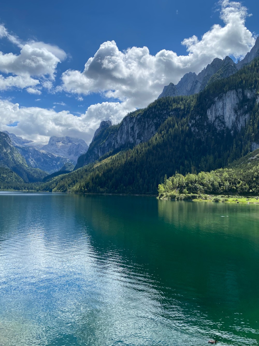 Die beiden Seen liegen unterhalb vom König Dachstein. Der hintere Gosausee liegt im Talschluss in einem Kessel. Die sehr steilen und schroffen Wände ragen Majestätisch zum Himmel empor.