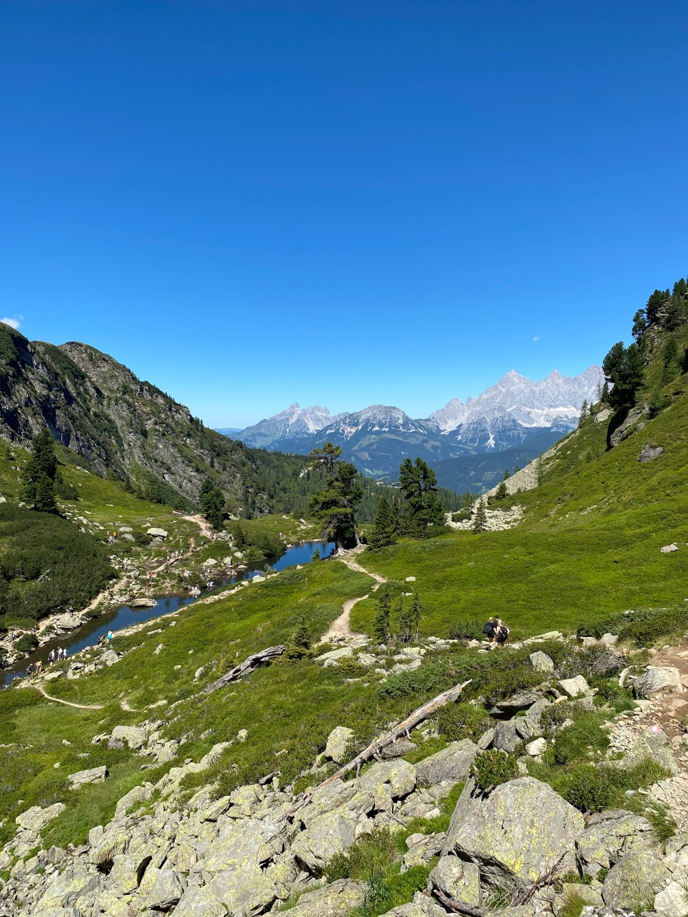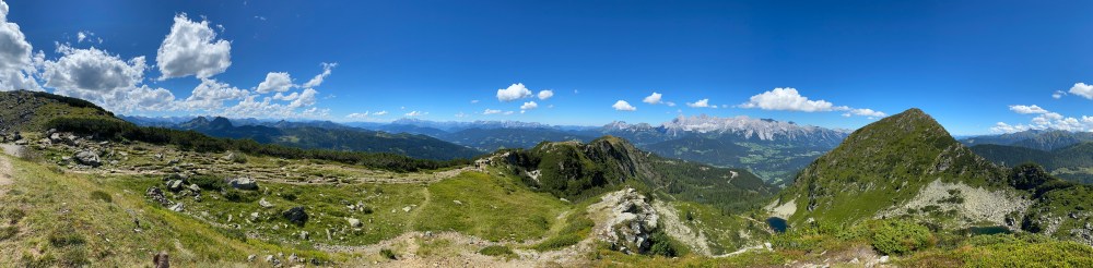 Mit neuer Kraft, Erlebnishungrig , so wollen wir heute auf der Reiteralm den Höhenrundweg gehen. Es erwartet uns eine ausgesprochene Reizvolle aber doch auch eine anspruchsvolle Höhenwanderung. Die Belohnung soll ein fantastischer Panoramablick sein, der die Hohen und niederen Tauern, den Hochkönig, Gosaukamm und Dachstein einschließt.