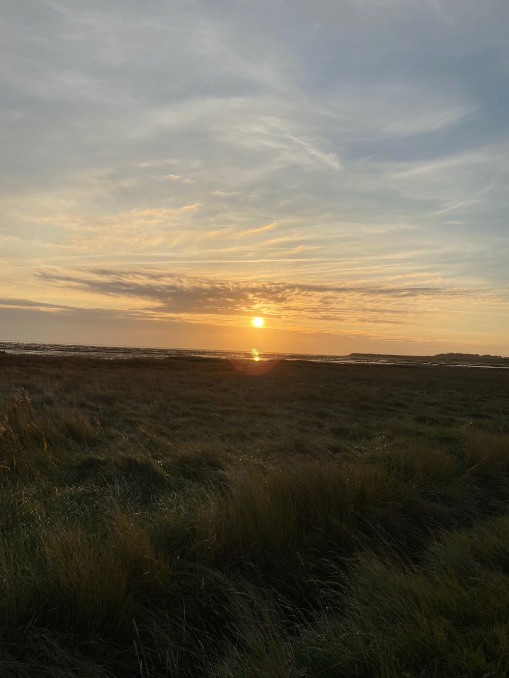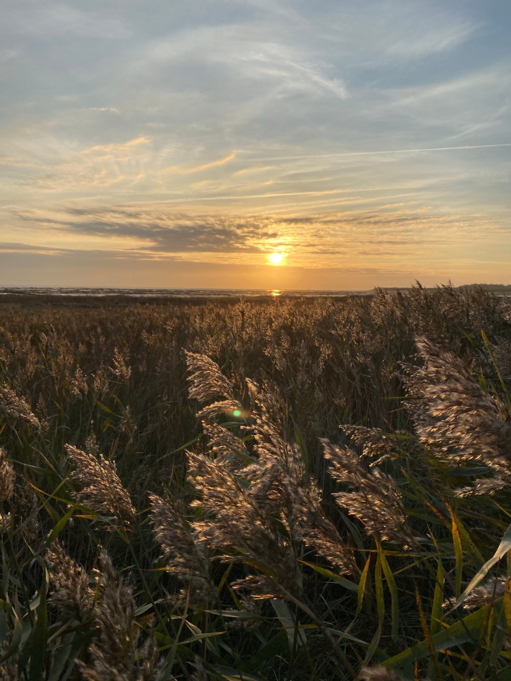 Frische Brötchen von Claussen sollen es sein, aber nicht auf dem direkten Weg. An der Wattseite den tollen Sonnenaufgang bewundern, Richtung St. Clemens. Diese durchdringende Friedlichkeit und Ruhe spüren.