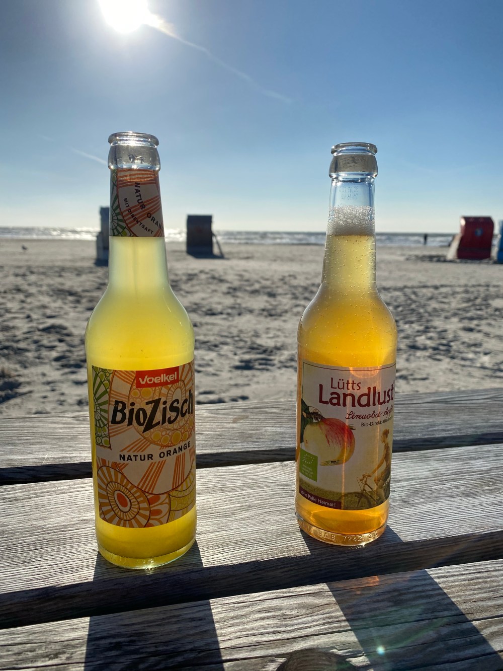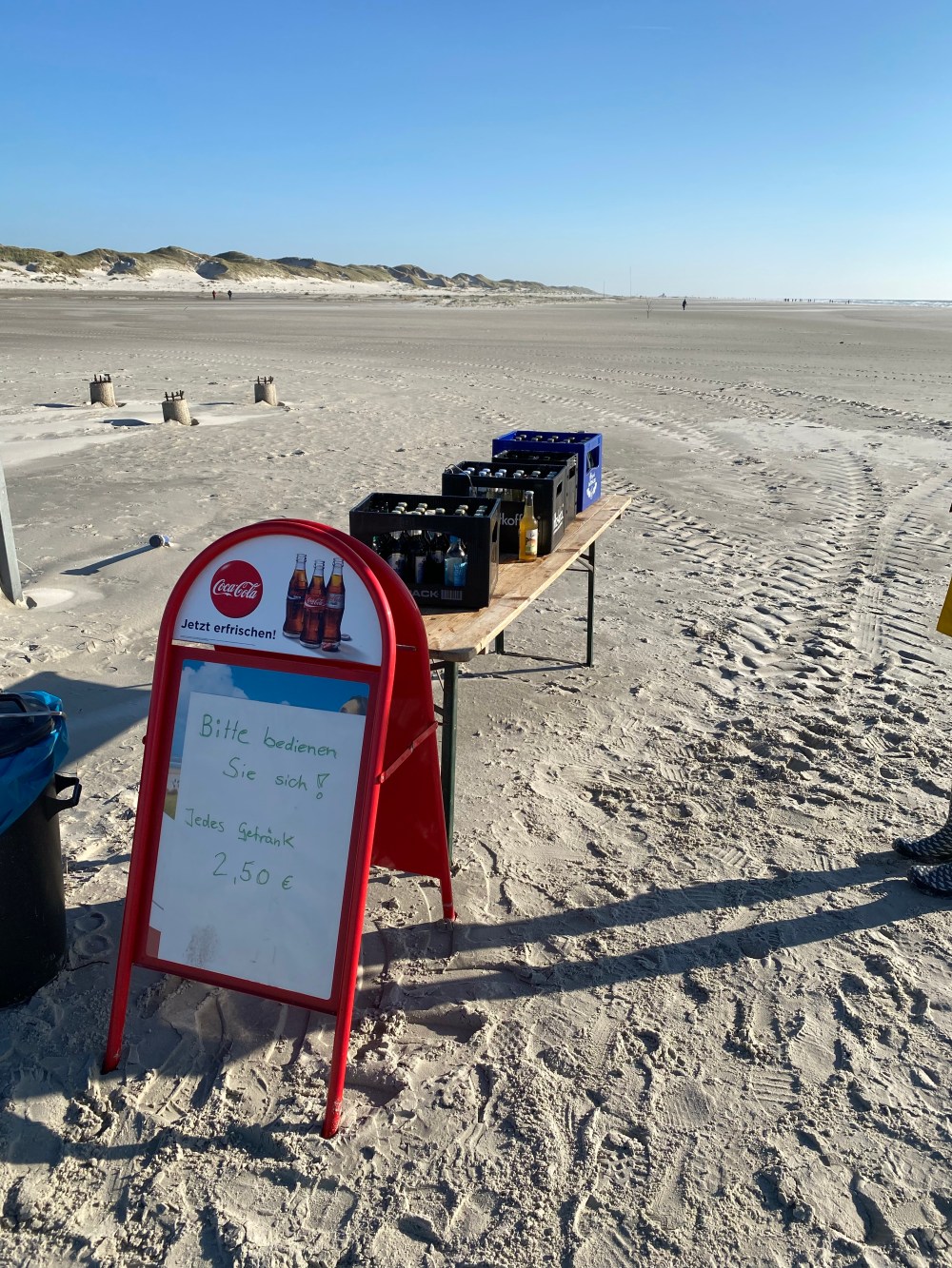 Empfangen wurden wie von einer tosenden Brandung, einem blauen Himmel den es nur am Meer oder in den Bergen gibt. 12.000 Schritte später, gut durch gelüftet und mit einem Grinsen gab es eine besondere Pause. Eine Bierzelt Garnitur mit Getränkekisten darauf zur reinen Selbstbedienung.