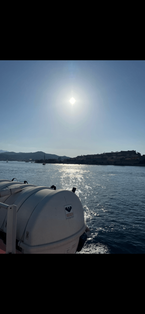 Nach all der Mühe sind wir dann aber dennoch in unserem Refugium angekommen und es ist eine Louge über dem Meer, mit einer Stille und einem Weitblick über Insel, bei guter Sicht bis Korsika.
