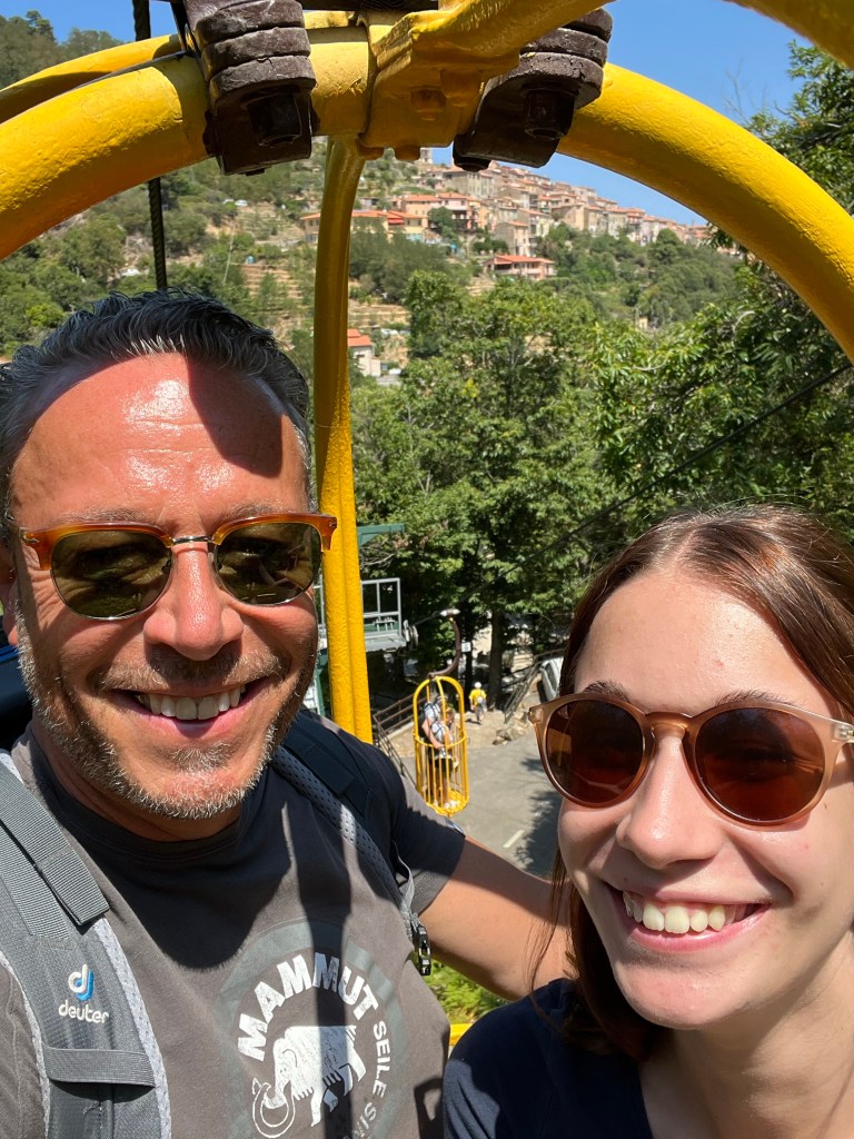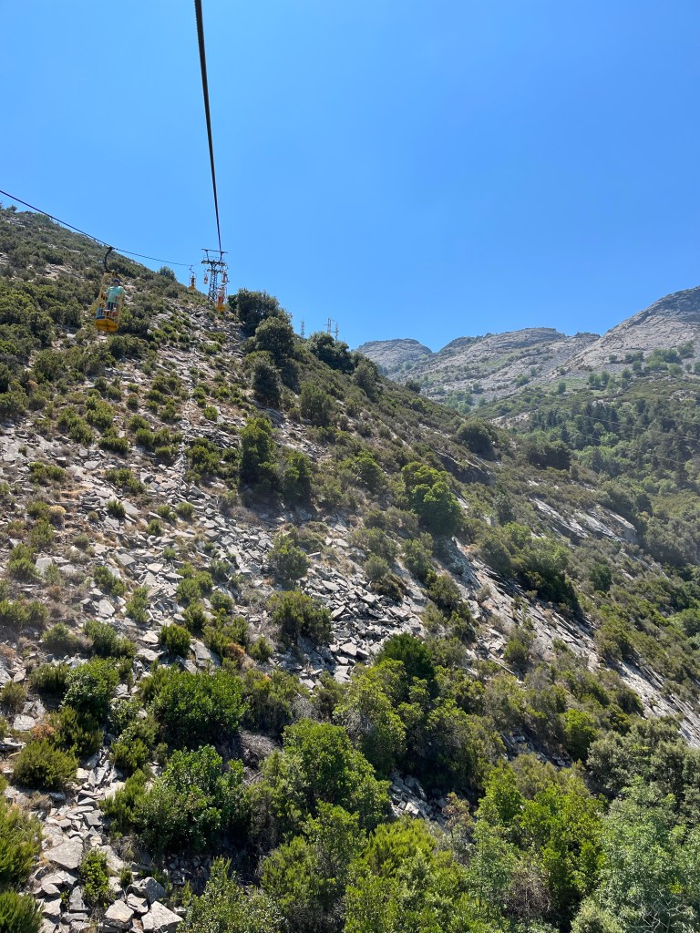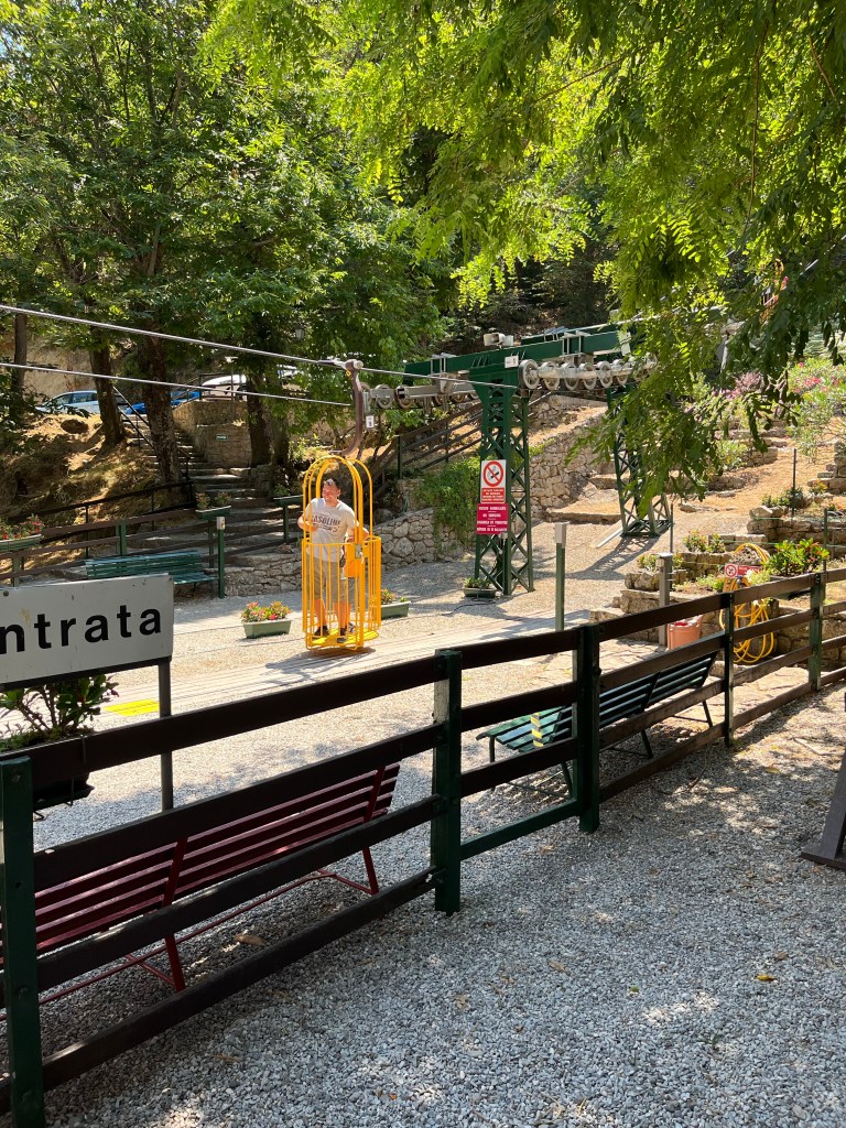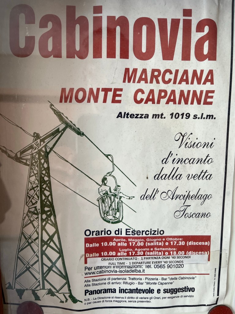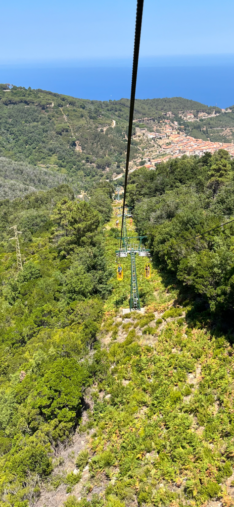 Es gibt eine Gondelbahn die auf dem Monte Capanne führt. Diese Gondeln sehen aus wie Vogelkäfige und man findet mit zwei Personen Platz drin. Im laufenden Betrieb muss man auf die Gondel aufspringen was bei zwei Personen wirklich witzig ist.