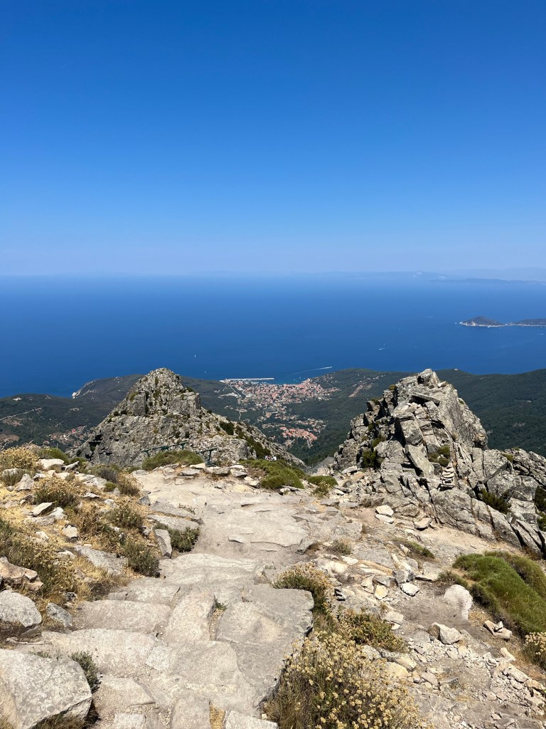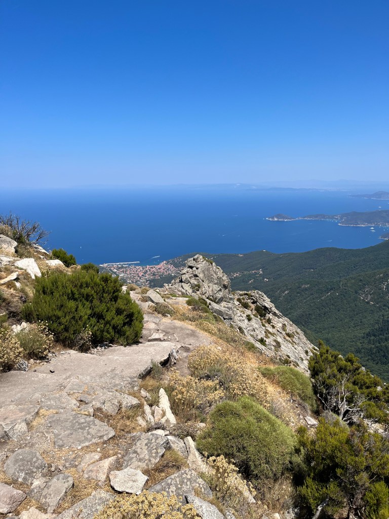 Oben erwartet einen ein wirklich toller Ausblick, bis Korsika, Festland und die umliegenden unbewohnten Inseln .. natürlich auch eine Rundumsicht über isola di Elba ..