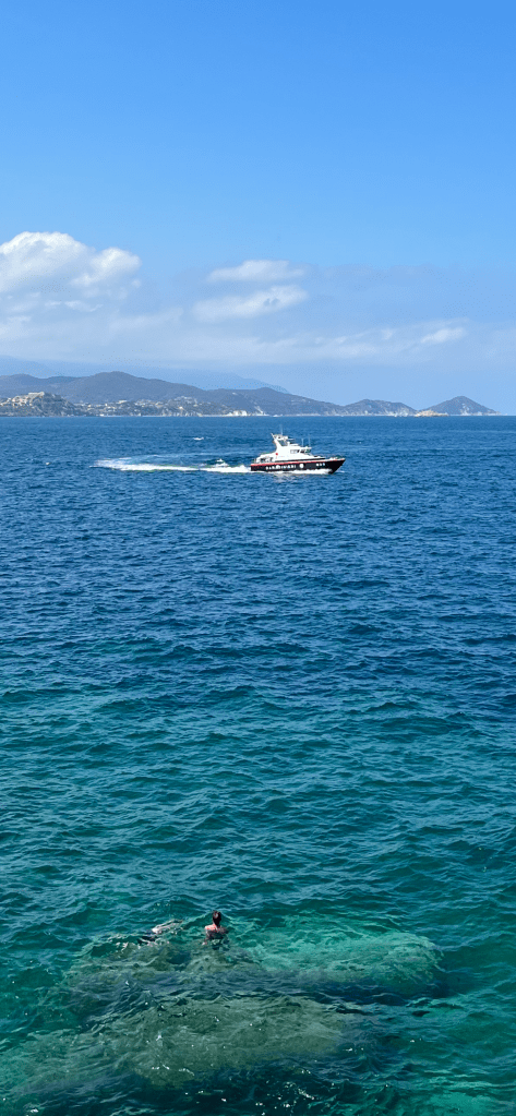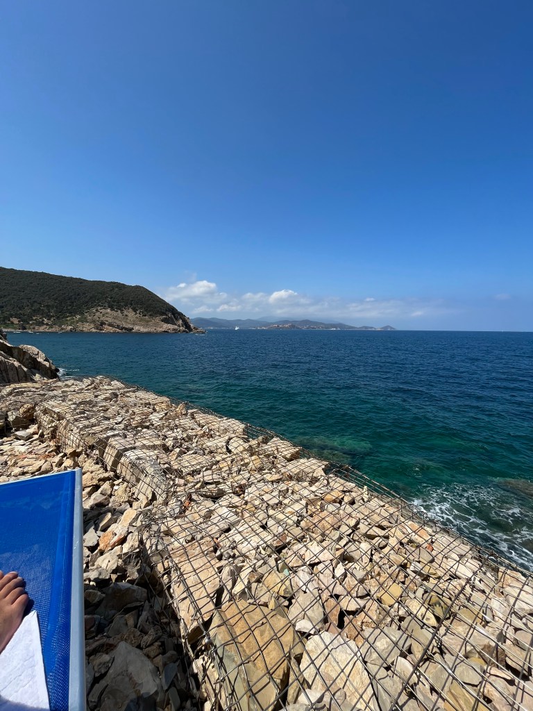 Wir haben einen tüchtigen Wellengang, wo Baden hier an den Felsen zu gefährlich wäre und so sitzen wir einfach Stunden auf dem Felsen und lassen uns von der Gischt mächtig nassspritzen.