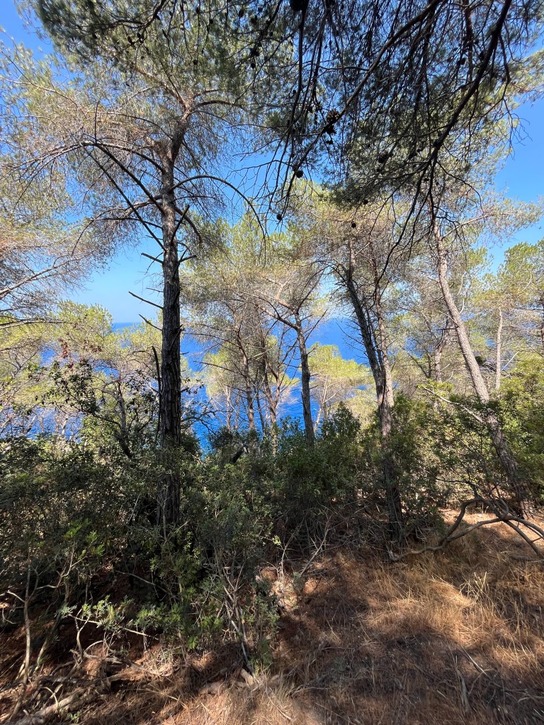 Im schattigen Wald geht es weiter und ab und an können wir auf das Türkise Wasser und die Felsen schauen.