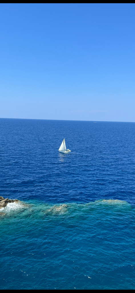 Unter uns liegt nun das Kap Enfola, wir gehen hinunter. Bis auf einen sehr netten Schweizer ist es hier Menschenleer… Eine wunderschöne Natur mit der Begrüßung eines Französischen Mobilfunk Unternehmen dass wir nun im französischen Netz sind – ach ja .. die Grenze zu Frankreich und die Nähe zu Korsika, wir fühlen uns dabei großartig.