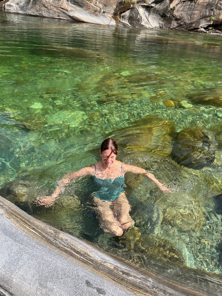 Wir hatten wirklich Glück, die Wassermassen des Gewitters vom Vortage waren abgelaufen und so konnten wir an der Verzasca laufen und auch baden.