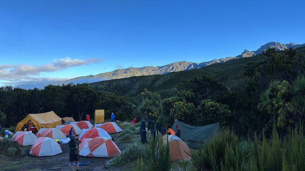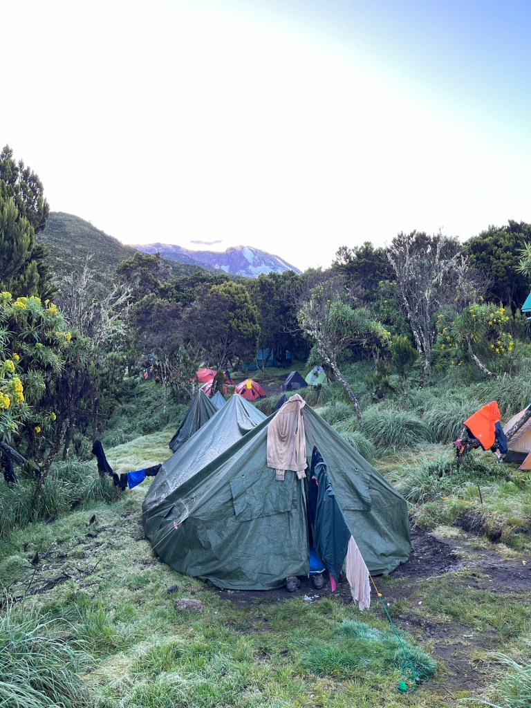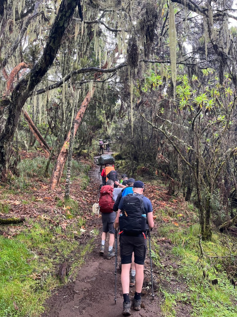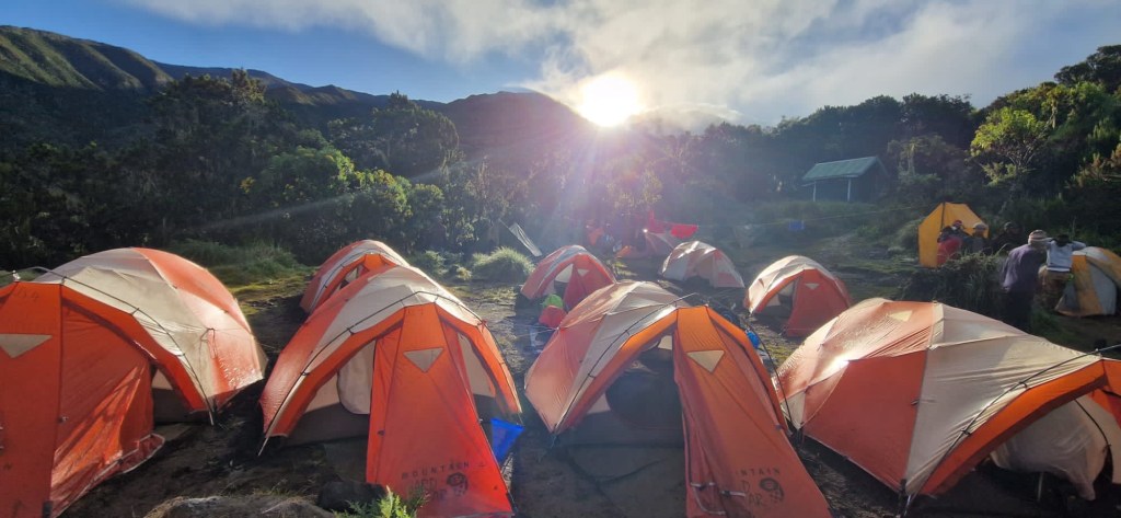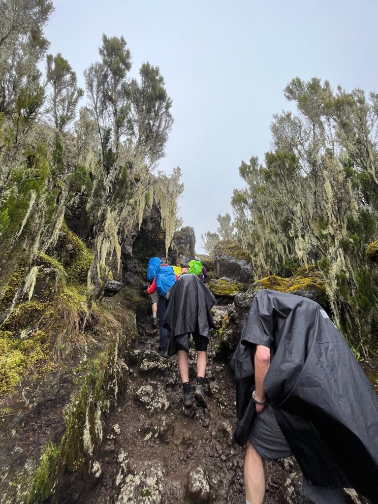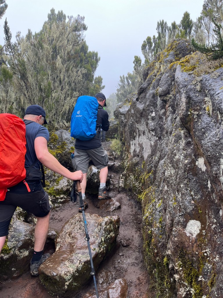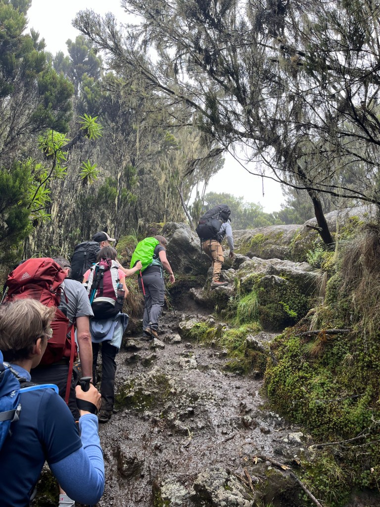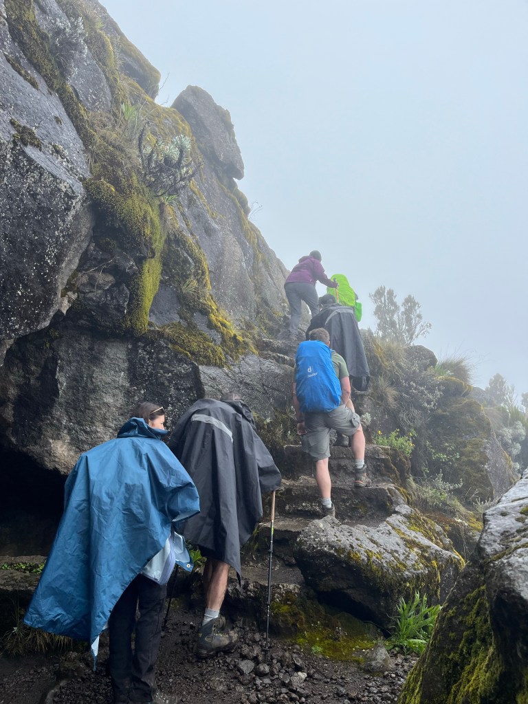 Zum ersten Mal erleben wir auch den Gesang der Porter am Morgen, erst schauen wir schüchtert dem trieben zu bis alle Hemmungen fallen und wir mit klatschen und singen obwohl wir den Text null kennen und können. Rucksack auf und auf zum Shira Camp auf 3750 Meter.