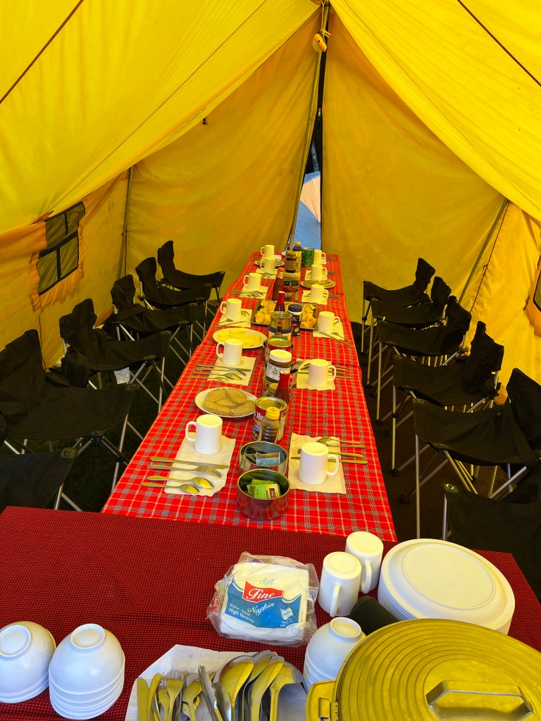 Es ist Tag zwei, die erste Nacht im Zelt und Karl weckt uns mit Musik obwohl wir wohl schon alle eh wach waren. Verdreht und noch von der ersten Etappe belegt steige ich aus meinem Zelt. Es ist alles im Dunst, es beginnt die Morgen Routine, eine Schale warmes Wasser für Zähneputzen und mal durch das Gesicht feudeln, inkl Deo Dusche.