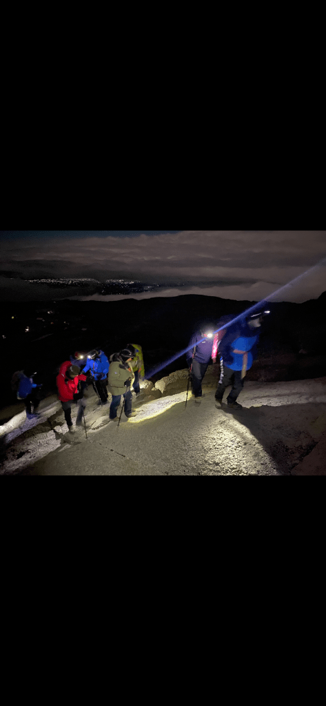23/00 Uhr es ist soweit und wir gehen langsam Pole Pole wie an Perlenkette aufgezogen los, es werden nur einzelne Worte gewechselt und keinen ist richtig nach reden zumute.