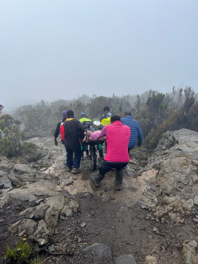 Bei zweien aus unser Gemeinschaft streikten die Knie, dafür gab es eine Art Bare mit ein gefedertem Gelände Motorradreifen unten drunter welche durch 5 Porter gehalten wurde. Eine irre Tortur auf dieser Bare zu liegen und den Abhang herunter gebracht zu werden. Aber auch sie kamen wohlbehalten im Camp an.