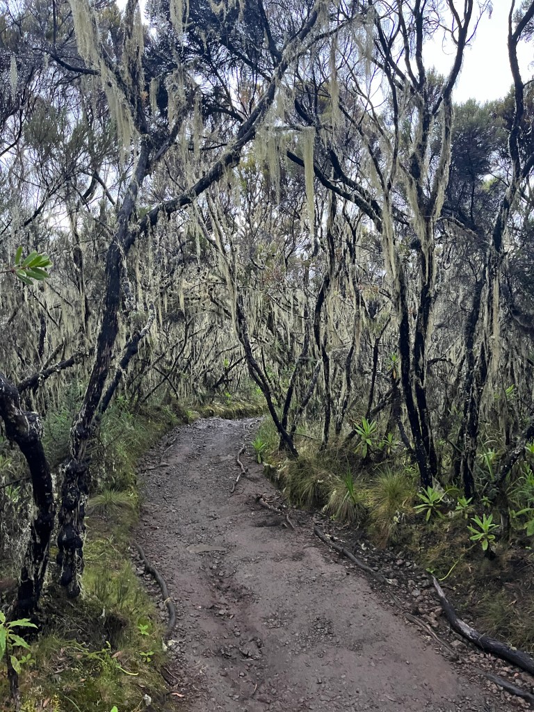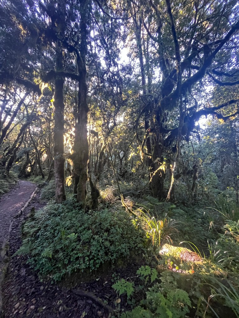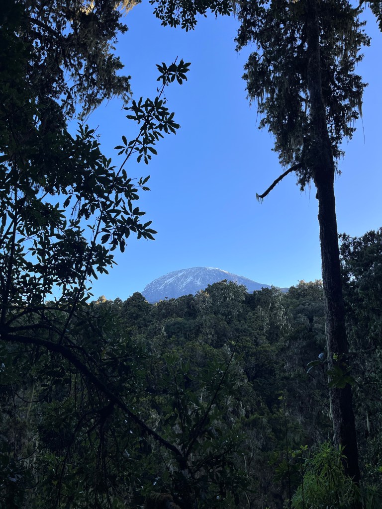 Ein auf die Knochen gehender Abstieg, nass glatt und fast eintönig. Der Regenwald hatte uns wieder verschlungen und gab einen letzten Blick auf den Gipfel des Mount Kilimandjaro frei.